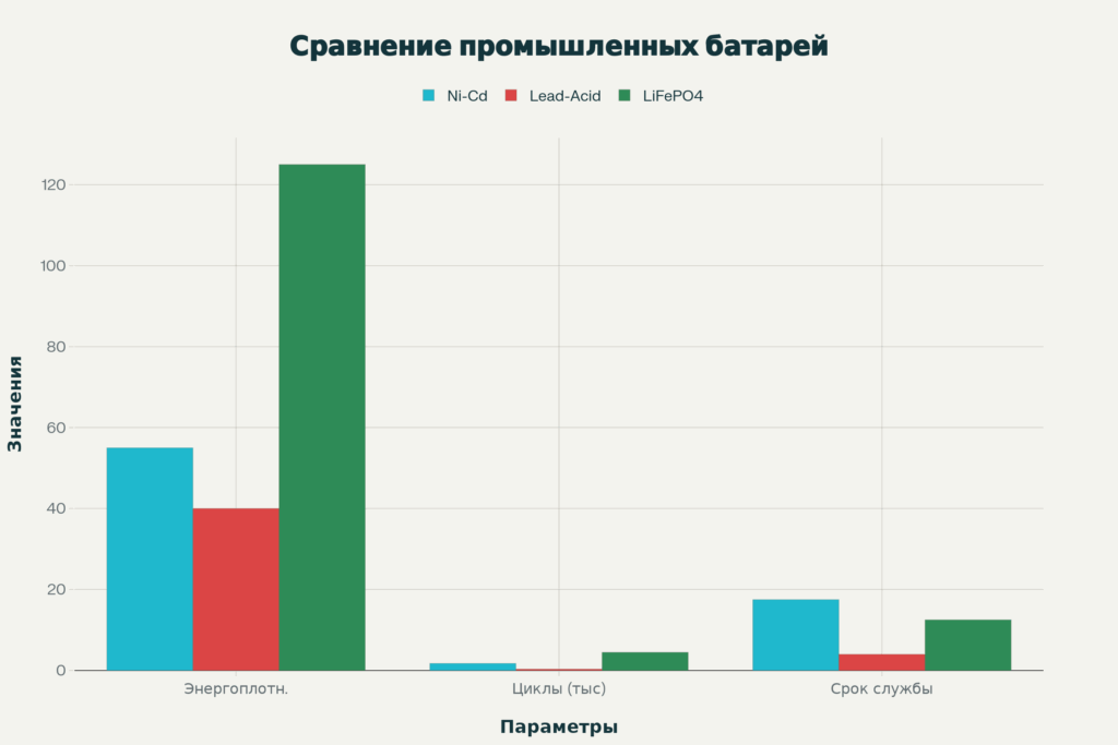 Сравнительный анализ промышленных и тяговых аккумуляторов: никель-кадмиевые, свинцово-кислотные и литий-железо-фосфатные